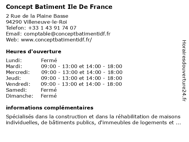 | Mardi | 09:00-13:00 et 14:00-18:00 |