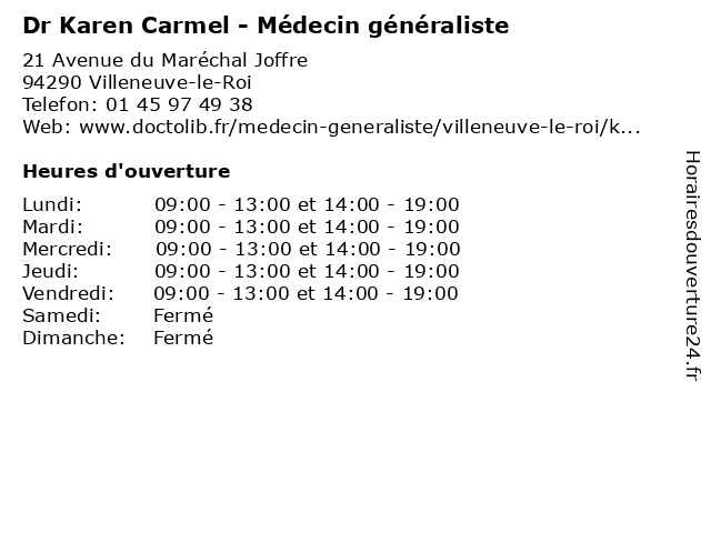 Lundi | 09:00-13:00 et 14:00-19:00 |