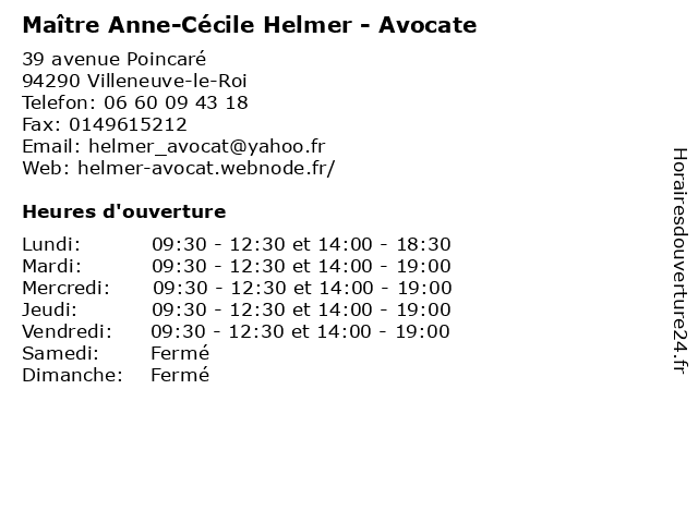 | Lundi | 09:30-12:30 et 14:00-18:30 |