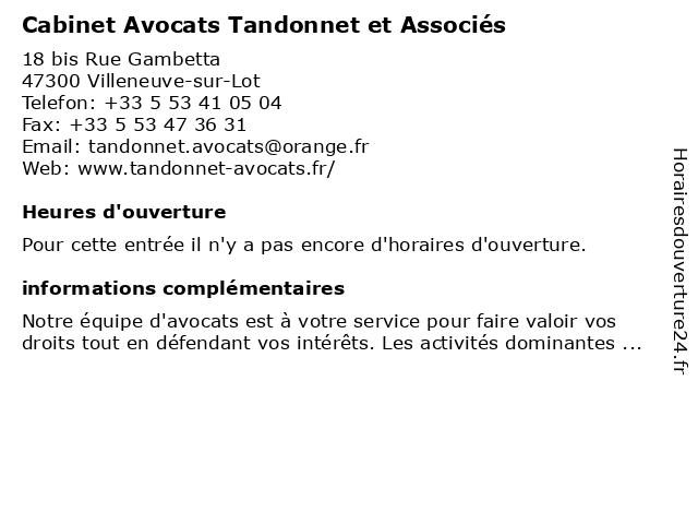 | Appeler Cabinet Avocats Tandonnet et Associés | |