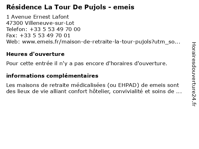 | Appeler Résidence La Tour De Pujols - emeis | |