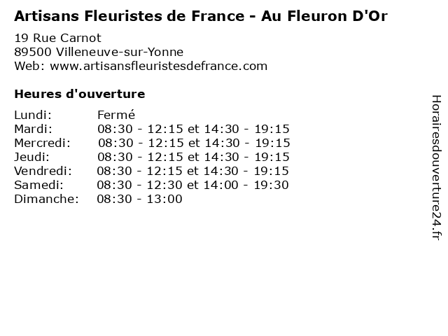 Samedi | 08:30-12:30 et 14:00-19:30 |