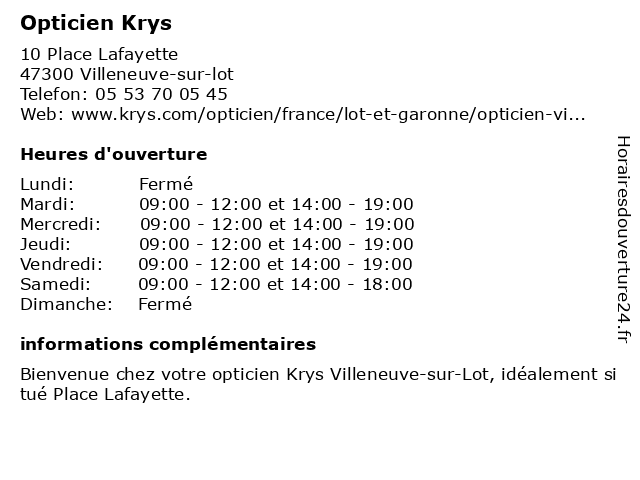 | Lundi | Fermé |