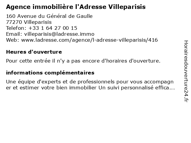 | Appeler Agence immobilière l'Adresse Villeparisis | |