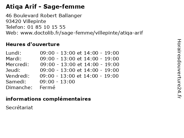 | Lundi | 09:00-13:00 et 14:00-19:00 |