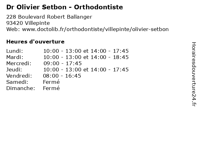 | Lundi | 10:00-13:00 et 14:00-17:45 |