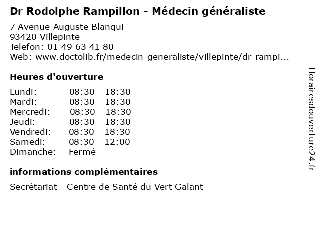 2 Rodolphe Bihannic - Etiopathe - secrétariat (Distance: 13,08 km) 188 Grande Rue Charles de Gaulle, 94130 Nogent-sur-Marne bihannic, docteur, etiopathe, médecin, médecine, rodolphe, secrétariat 3 Dr Rodolphe Akakpo - Pédiatre - secrétariat (Distance: 15,61 km) 9 Allée des 2 Châteaux, 77600 Bussy-Saint-Georges akakpo, consultation, docteur, dr, med, médecin, médecine, pédiatre, rodolphe, secrétariat, traitement 4 Rodolphe Cadet - Ostéopathe (Distance: 16,06 km) 6 Rue Ordener, 75018 Paris cadet, ostéo, ostéopathe, ostéopathes, rodolphe, soins 5 Rodolphe Caillard - Ostéopathe (Distance: 17,92 km) 32 Rue Paul Belmondo, 75012 Paris caillard, ostéo, ostéopathe, ostéopathes, rodolphe, soins 6 Psychothérapie Paris 9 - Rodolphe Girard (Distance: 17,95 km) 21 Rue du Faubourg Montmartre, 75009 Paris girard, paris, psychothérapie, rodolphe |