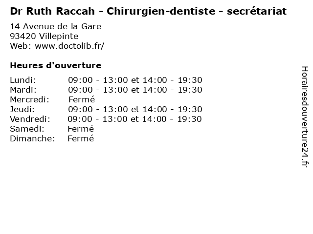 | Lundi | 09:00-13:00 et 14:00-19:30 |