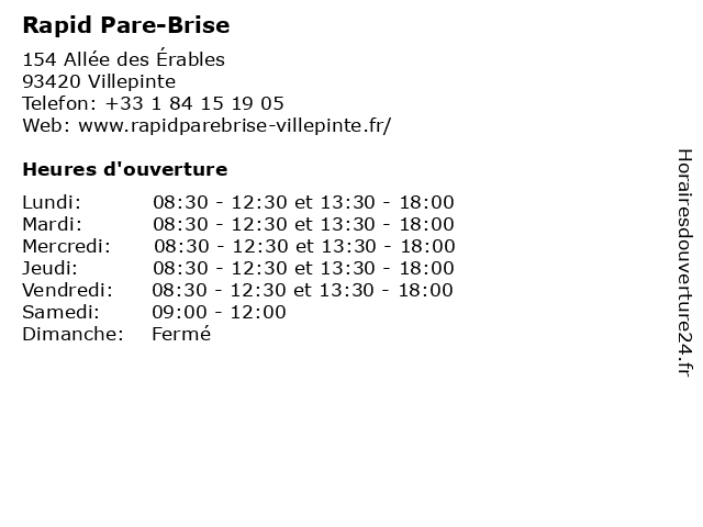 | Lundi | 08:30-12:30 et 13:30-18:00 |