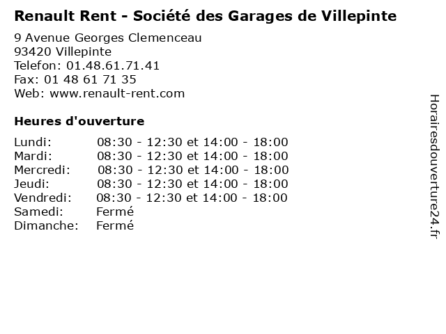 | Lundi | 08:30-12:30 et 14:00-18:00 |