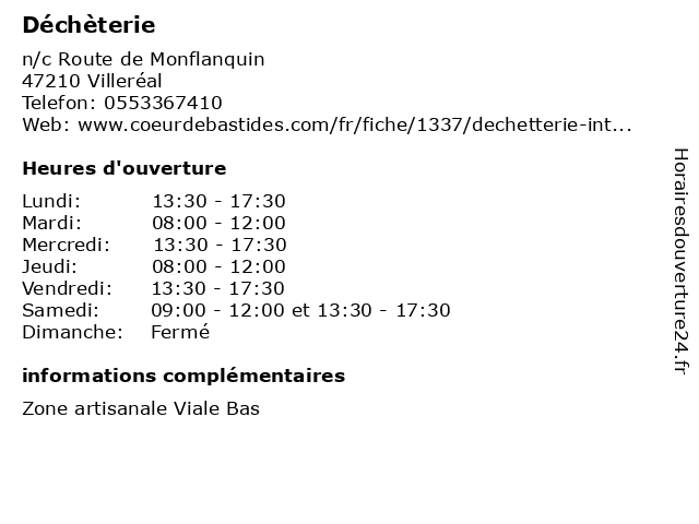 | Samedi | 09:00-12:00 et 13:30-17:30 |