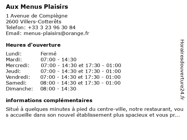 | Lundi | Fermé |