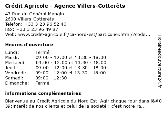 Termes de recherche pour Crédit Agricole - Agence Villers-Cotterêts:villers, agence, agricole, crédit, cotterets |
