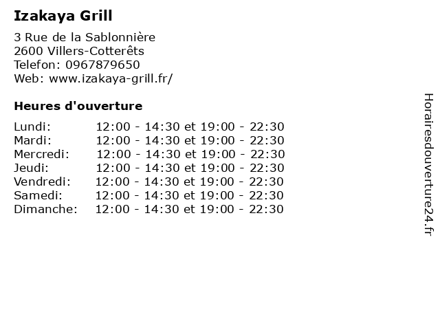 | Dimanche | 12:00-14:30 et 19:00-22:30 |