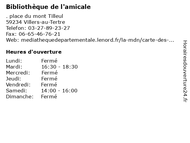 | Lundi | Fermé |