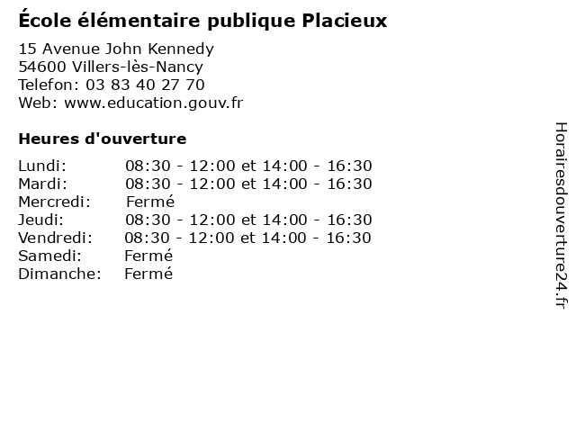 | Mardi | 08:30-12:00 et 14:00-16:30 |