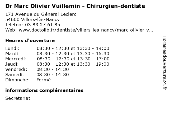 | Jeudi | 08:30-12:30 et 13:30-19:00 |
