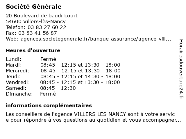 1 Société Générale (Distance: 1,31 km) - Avenue du Général Leclerc, 54500 Vandœuvre-lès-Nancy agence, devis d'assurance automobile, générale, prêt à domicile, prêt à la consommation, société 2 Société Générale (Distance: 1,79 km) 1 Rue de turique, 54000 Nancy association d'épargne et de crédit, atm, conseil en crédit, générale, organisme d'assurance auto, organisme d'assurance moto, organisme d'assurance-habitation, organisme d'assurance-vie, société 3 Société Générale (Distance: 2,16 km) 10 Place Henri Mengin, 54000 Nancy agence, argent, bancaire, banque, générale, prêts, service, société, épargne 4 Société Générale (Distance: 2,42 km) 28 Cours leopold, 54000 Nancy association d'épargne et de crédit, atm, conseil en crédit, générale, organisme d'assurance auto, organisme d'assurance moto, organisme d'assurance-habitation, organisme d'assurance-vie, société 5 Société Générale (Distance: 2,80 km) 248 Avenue de strasbourg, 54000 Nancy association d'épargne et de crédit, atm, conseil en crédit, générale, organisme d'assurance auto, organisme d'assurance moto, organisme d'assurance-habitation, organisme d'assurance-vie, société 6 Société Générale (Distance: 3,79 km) . Route 570, 54180 Houdemont cafe, chaussures, enfants, générale, homme, mode femme, restaurant, service, société |