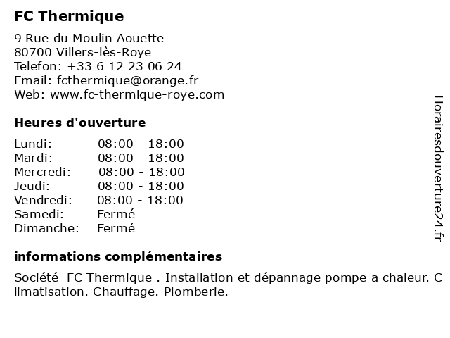 | Samedi | Fermé |