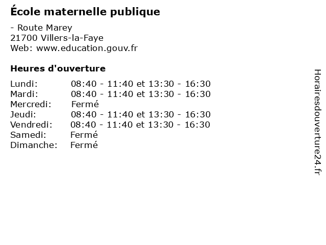 | Mardi | 08:40-11:40 et 13:30-16:30 |