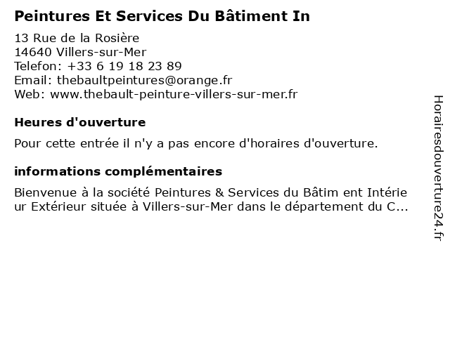 | Appeler Peintures Et Services Du Bâtiment In | |