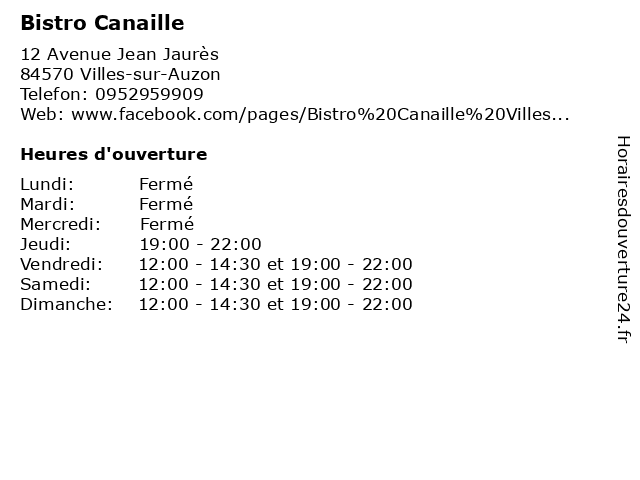 | Dimanche | 12:00-14:30 et 19:00-22:00 |