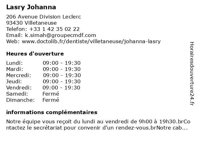 1 Dr Johanna Halfon - Chirurgien Dentiste (Distance: 3,14 km) 97 Avenue de Stalingrad, 93240 Stains 93240, centre, chirurgien, dentaire, dentiste, dr, globe, halfon, johanna, ophtalmologie, stains 2 Dr Johanna Platkiewicz - Médecin généraliste - secrétariat (Distance: 4,45 km) 2 Mail de l'Egalité, 93120 La Courneuve dr, généraliste, johanna, médecin, médecine, médical, pharmaceutique, platkiewicz, secrétariat, traitement 3 Dr Johanna Gasy - Chirurgien-dentiste (Distance: 6,27 km) 68 Rue Duhesme, 75018 Paris chirurgien, dentaire, dentiste, dr, gasy, implantologie, johanna, parodontologie 4 Dr Johanna Zerbib - Chirurgien-dentiste - secrétariat (Distance: 6,38 km) 22 Avenue Francis de Pressensé, 93350 Le Bourget chirurgien, consultation, dentiste, docteur, dr, johanna, med, médecin, médecine, secrétariat, traitement, zerbib 5 Dr Johanna Levy - Chirurgien-dentiste (Distance: 6,44 km) 243 Rue Marcadet, 75018 Paris chirurgien, dentiste, dr, johanna, levy, médecin, médecine, médical, pharmaceutique, traitement 6 Dr Johanna Levy - Chirurgien-dentiste (Distance: 6,44 km) 243 Rue Marcadet, 75018 Paris chirurgien, consultation, dentiste, docteur, dr, johanna, levy, med, médecin, médecine, secrétariat, traitement |