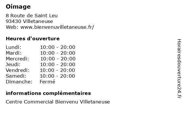 | Mercredi | 10:00-20:00 |