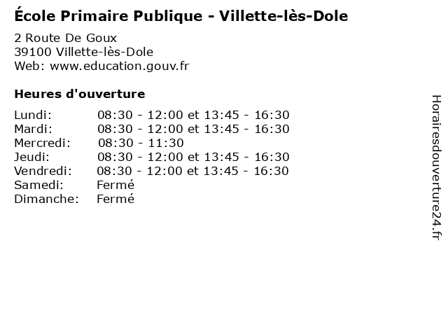 | Lundi | 08:30-12:00 et 13:45-16:30 |