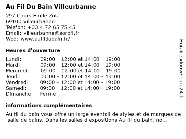 | Samedi | 09:00-12:00 et 14:00-19:00 |