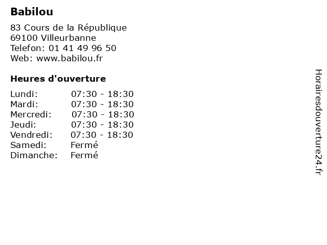 1 Babilou (Distance: 1,24 km) 23 Boulevard Jules Favre, 69006 Lyon babilou, babysitting, crèches, garde d'enfants 2 3 Babilou (Distance: 1,93 km) 100 Cours Lafayette, 69003 Lyon babilou, babysitting, crèches, garde d'enfants 4 Babilou (Distance: 1,97 km) 27 Rue Louis Blanc, 69006 Lyon babilou, babysitting, crèches, garde d'enfants 5 Babilou (Distance: 3,64 km) 23B Rue de l’Oratoire, 69300 Caluire et Cuire babilou, babysitting, crèches, garde d'enfants 6 |