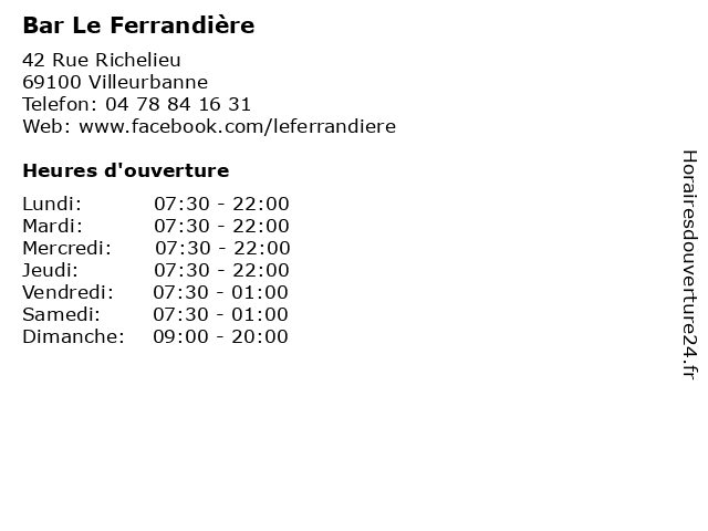 | Vendredi | 07:30-01:00 |