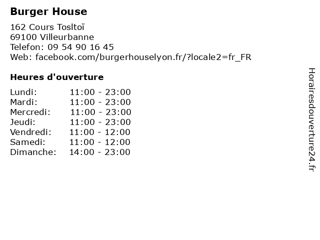 | Jeudi | 11:00-23:00 |
