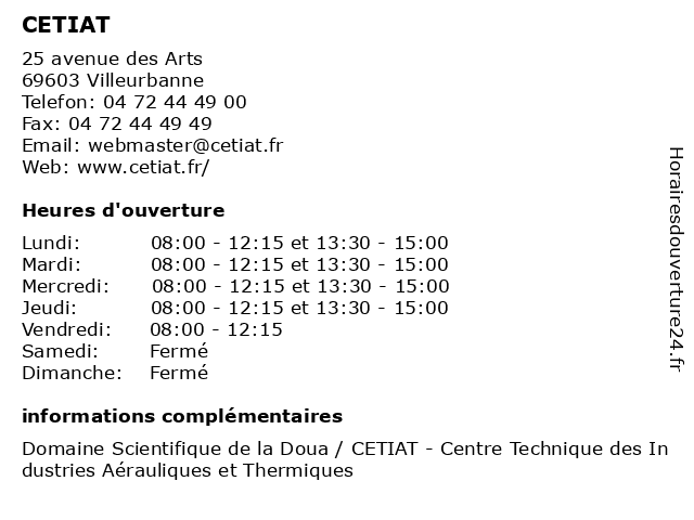 | Mercredi | 08:00-12:15 et 13:30-15:00 |