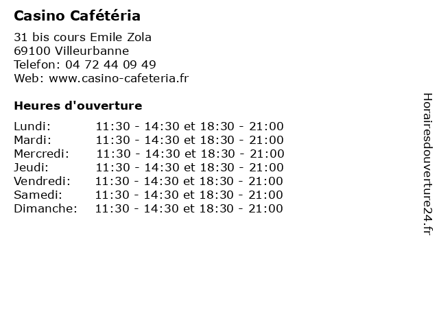 1 Casino Cafétéria (Distance: 1,43 km) 42 Rue de la Villette, 69003 Lyon cafeteria, cafétéria, casino, foods, kids, restaurants 2 Casino Supermarché (Distance: 0,56 km) 31bis Cours Emile Zola, 69100 Villeurbanne alimentaire, alimentation, casino, courses, distributeur, hypermarché, supermarché, supermarchés, épicerie 3 Le Petit Casino des Gratte-Ciel (Distance: 0,64 km) 32 Rue Michel Servet, 69100 Villeurbanne alimentaire, alimentation, casino, ciel, courses, des, distributeur, gratte, le, petit, supermarché, supérette, épicerie 4 Cafétéria Le Pré Vert (Distance: 0,99 km) 2 Avenue Salvador Allende, 69100 Villeurbanne bar, cafétéria, cuisine, le, pré, restaurant, restaurants, vert 5 Cafétéria Croissanter (Distance: 1,01 km) 43 Boulevard Du 11 Novembre 1918, 69100 Villeurbanne cafétéria, croissanter 6 Supermarché Casino (Distance: 1,21 km) . Place Julie Daubié, 69008 Lyon cafeteria, casino, discount, supermarche, supermarché |