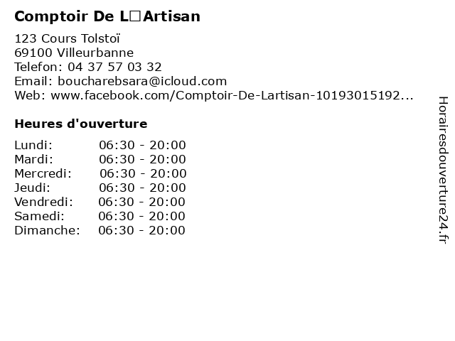 | Samedi | 06:30-20:00 |