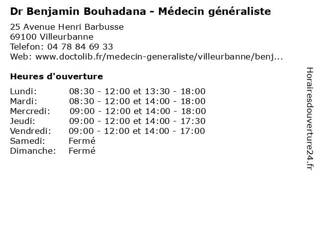 | Lundi | 08:30-12:00 et 13:30-18:00 |