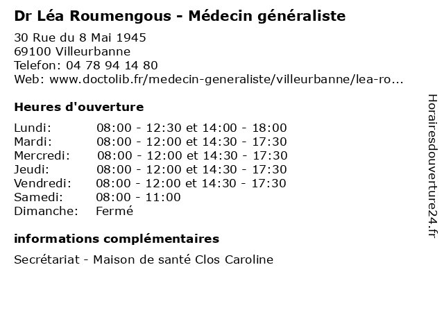 | Lundi | 08:00-12:30 et 14:00-18:00 |