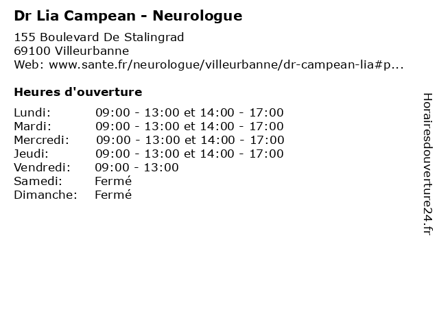 | Lundi | 09:00-13:00 et 14:00-17:00 |