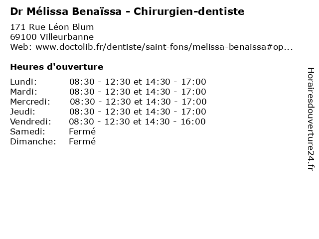| Lundi | 08:30-12:30 et 14:30-17:00 |