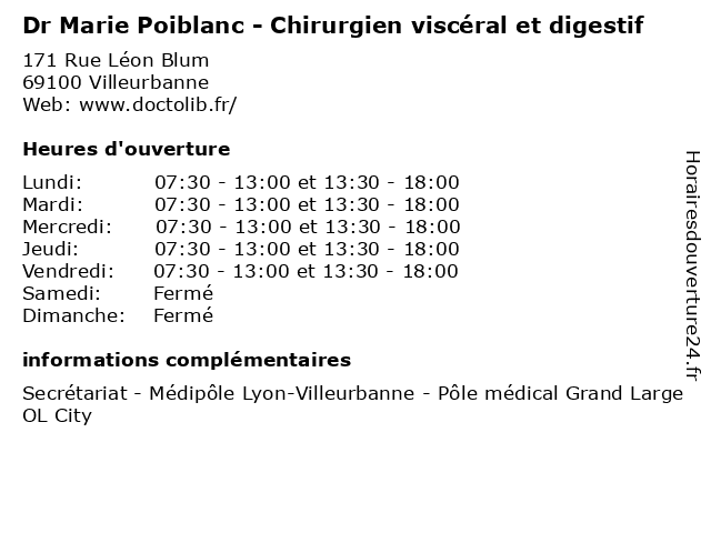 | Lundi | 07:30-13:00 et 13:30-18:00 |