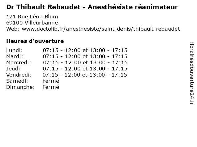 | Jeudi | 07:15-12:00 et 13:00-17:15 |