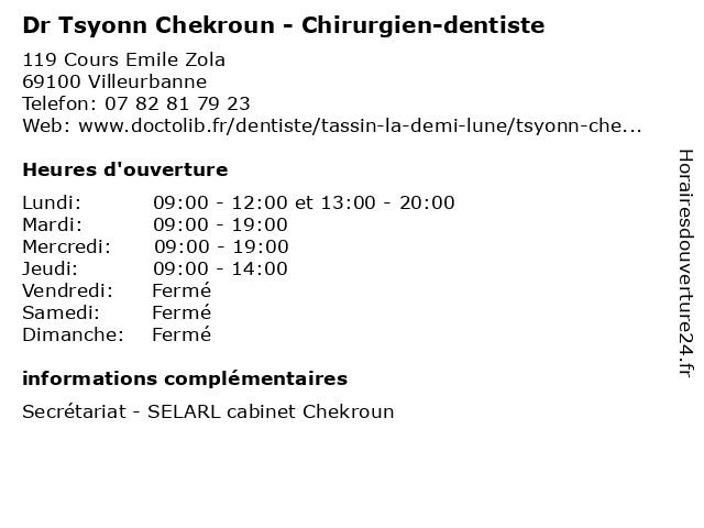 | Lundi | 09:00-12:00 et 13:00-20:00 |
