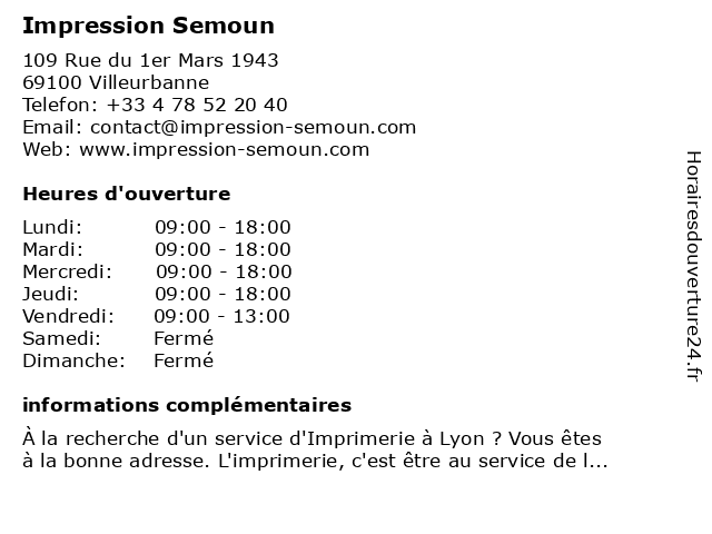 1 Impression Semoun (Distance: 1,90 km) 41 Rue Francis de Pressencé, 69100 Villeurbanne impression, papeterie, photocopie, semoun, service 2 Société Nouvelle OZA - Impression Lyon (Distance: 0,96 km) 72 Avenue Paul Kruger, 69100 Villeurbanne impression, lyon, nouvelle, oza, société 3 Borne d'impression photo Speedlab (Distance: 2,35 km) Place Charles Béraudier, 69003 Lyon borne, d'impression, photo, speedlab 4 Borne d'impression photo Speedlab (Distance: 2,60 km) Rue Docteur Bouchut, 69001 Lyon borne, d'impression, photo, speedlab 5 Borne d'impression photo Speedlab (Distance: 3,57 km) 43 Rue de la Thibaudière, 69007 Lyon borne, d'impression, photo, speedlab 6 Borne d'impression photo Speedlab (Distance: 5,01 km) 1 Place Maréchal Foch, 69300 Caluire-et-Cuire borne, d'impression, photo, speedlab |