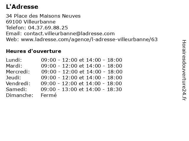 1 Agence immobilière l'Adresse Lyon 3 (Distance: 0,66 km) 51 bis Avenue Lacassagne, 69003 Lyon agence, immobilière, l'adresse, lyon 2 Restaurant L'Adresse (Distance: 10,03 km) 4 Place de Manissieux, 69800 Saint-Priest adresse, brasserie, l'adresse, restaurant, restauration 3 Restaurant L'Adresse (Distance: 56,66 km) 1 Place Edgar Quinet, 01000 Bourg-en-Bresse cuisine, l'adresse, restaurant, restauration 4 Agence immobilière l'Adresse Bourg-en-Bresse (Distance: 56,75 km) 48 bis Boulevard de Brou, 01000 Bourg-en-Bresse agence, bourg, bresse, en, immobilière, l'adresse 5 Domia Diagnostic (Distance: 0,18 km) 232 Avenue Félix Faure, 69003 Lyon diagnostic, domia, gestion, immobilier, location, marchandises, transaction, vente 6 Augexi - Audit Gestion et Expertise Internationale (Distance: 2,12 km) 277 Rue Duguesclin, 69003 Lyon audit, augexi, bilan, comptabilité, comptable, et, expert, expertise, gestion, internationale, juridique, social |