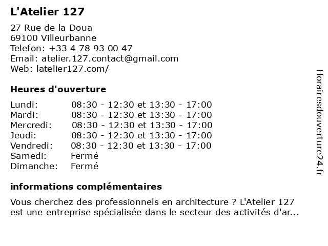 | Lundi | 08:30-12:30 et 13:30-17:00 |