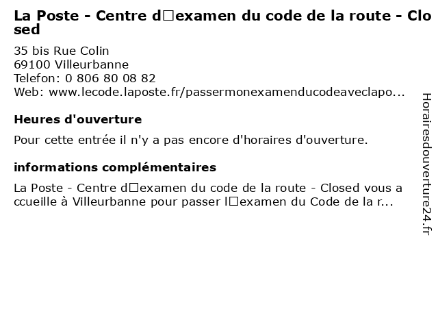 | Appeler La Poste - Centre d’examen du code de la route - Closed | |