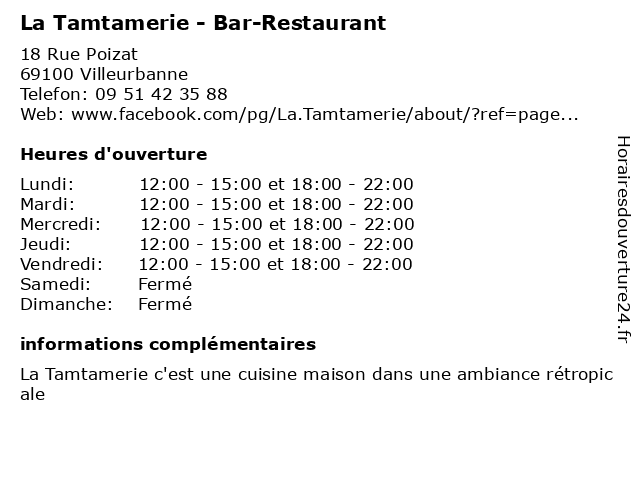 | Mardi | 12:00-15:00 et 18:00-22:00 |