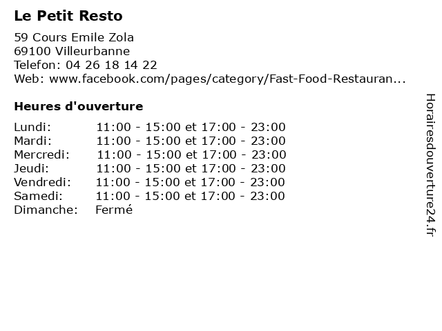 | Mardi | 11:00-15:00 et 17:00-23:00 |