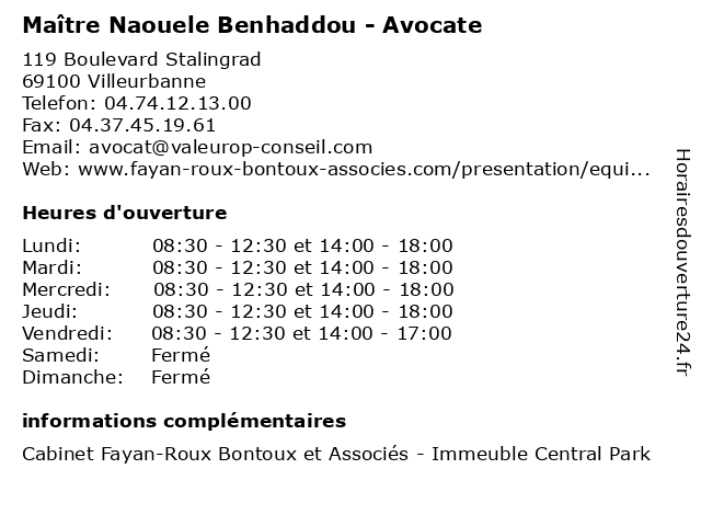 | Lundi | 08:30-12:30 et 14:00-18:00 |